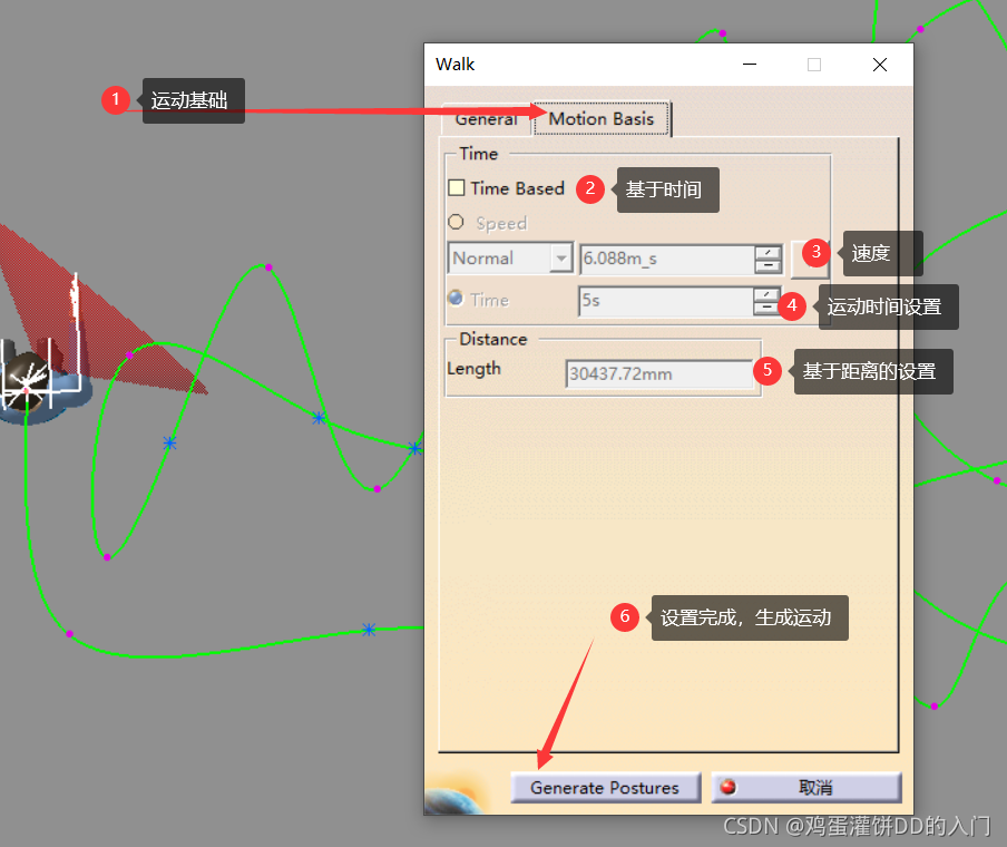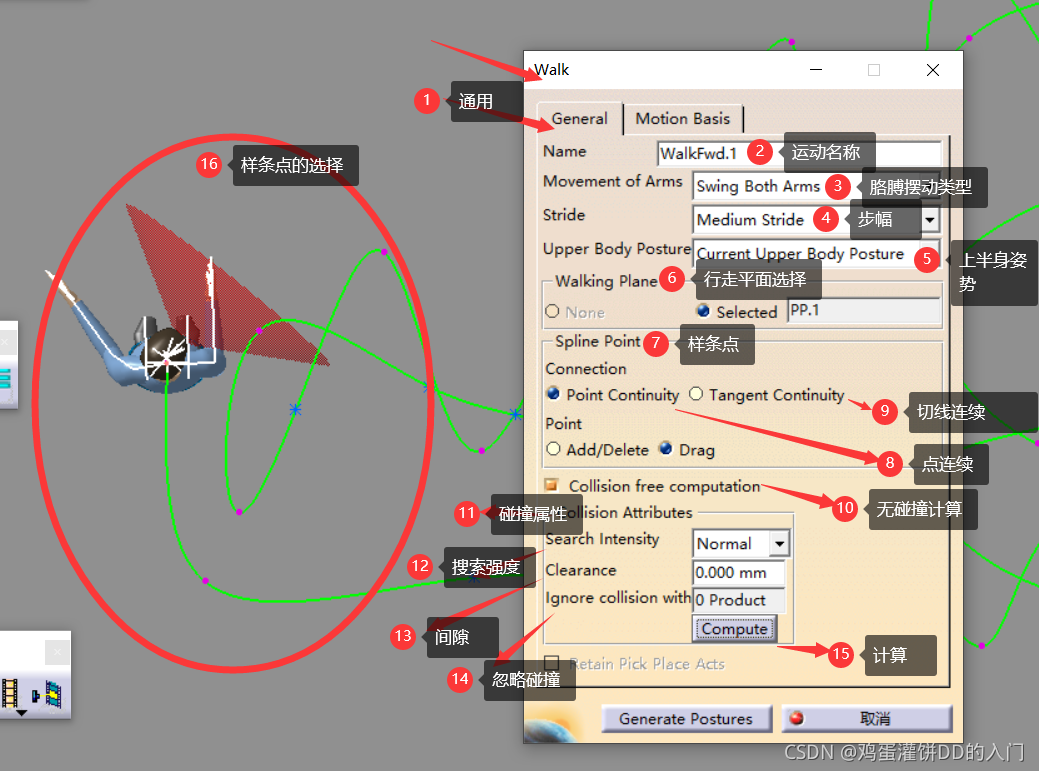4.点击命令后,选择人体模型,弹出如下的walk对话框:
