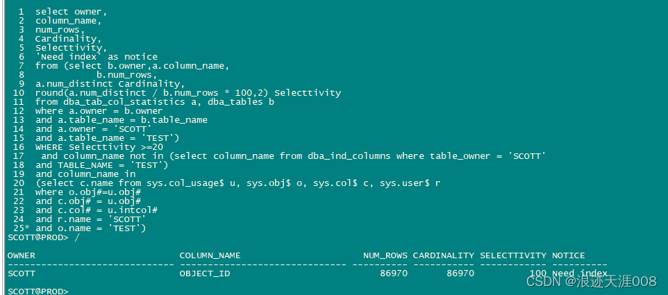 自动化脚本分享:抓出必须创建索引的列(请根据自己的环境对该脚本适当的修改,以便用于生产环境。)
