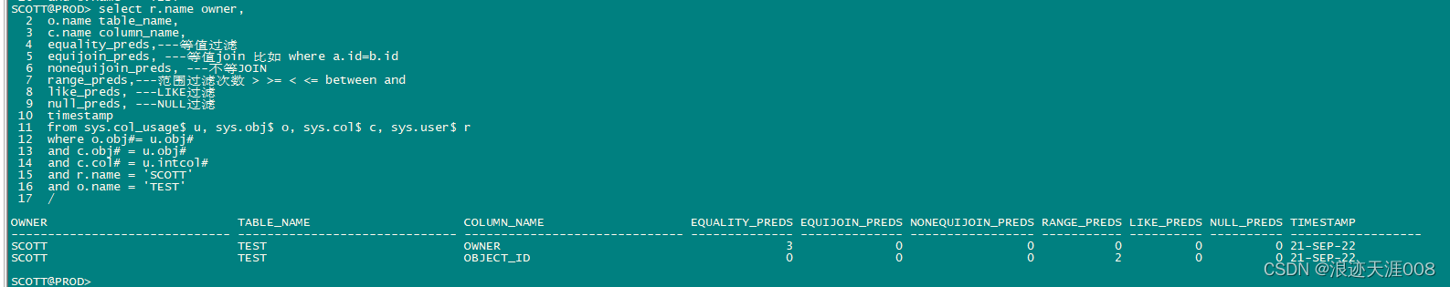 首先,该类必须出现在where中,那么怎么抓出表的那个列出现在where条件中呢?有两种方法,一种通过v$SQL_PLAN抓取,另一个通过下面的脚本进行抓取。
