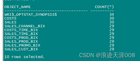 由上面的结果可以知道,object_name列的数据分布非常均衡。我们查询一下sql
