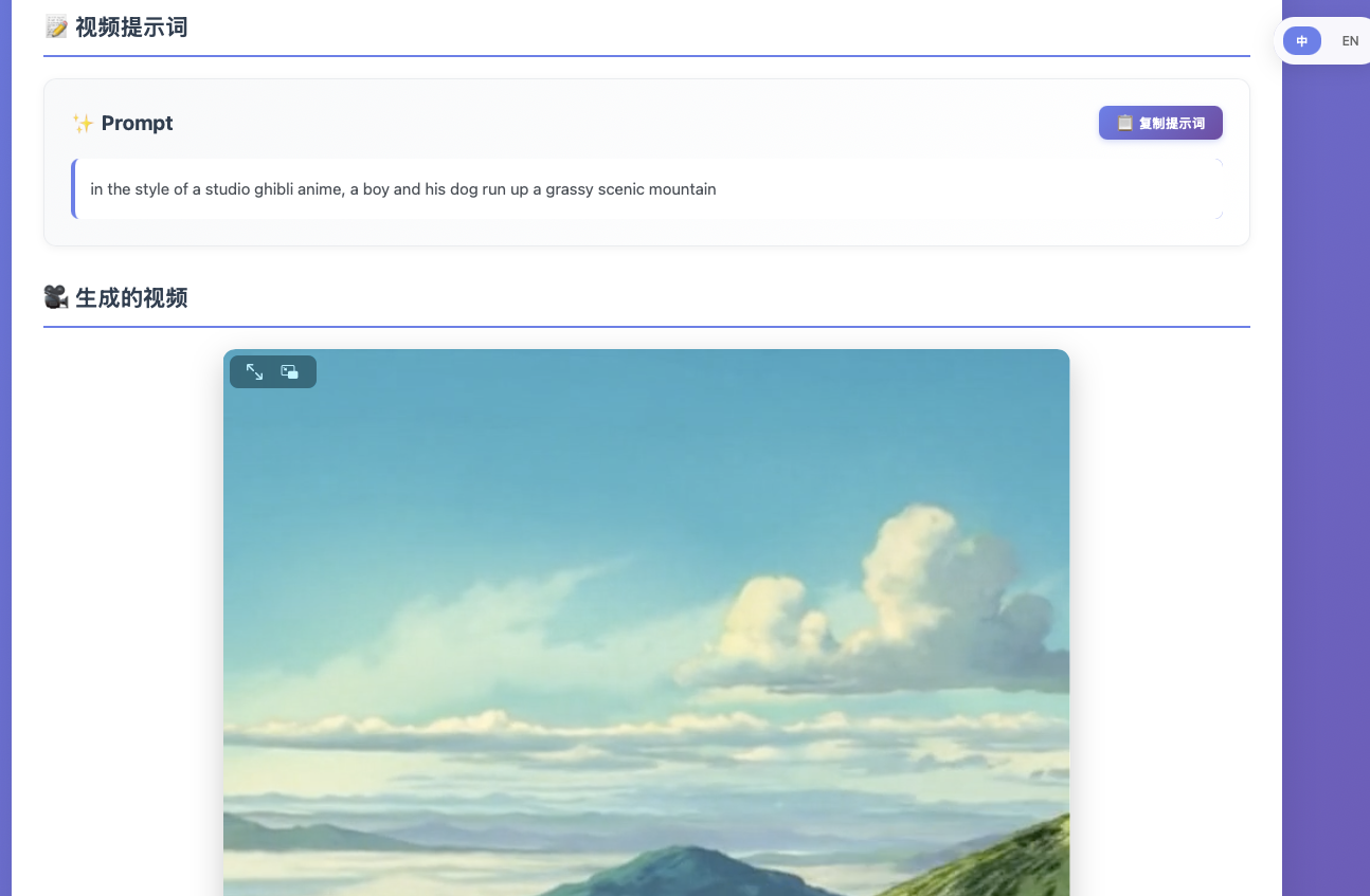 “缓慢摇镜”、“微风吹动草地”等可提升真实度 |