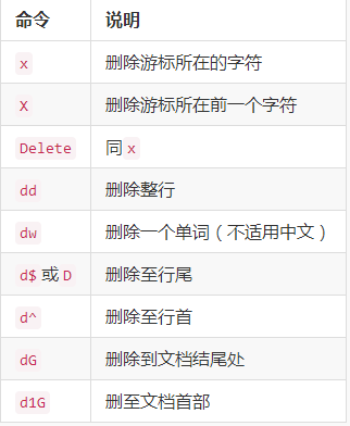 | dG | 删除光标所在行到文件末尾的内容 |