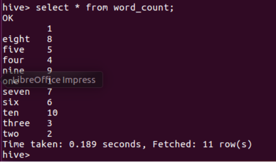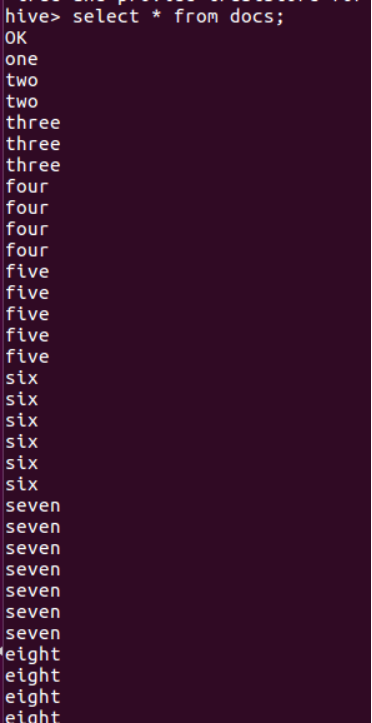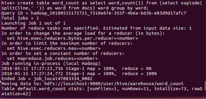用HQL进行词频统计,结果放在表word_count里