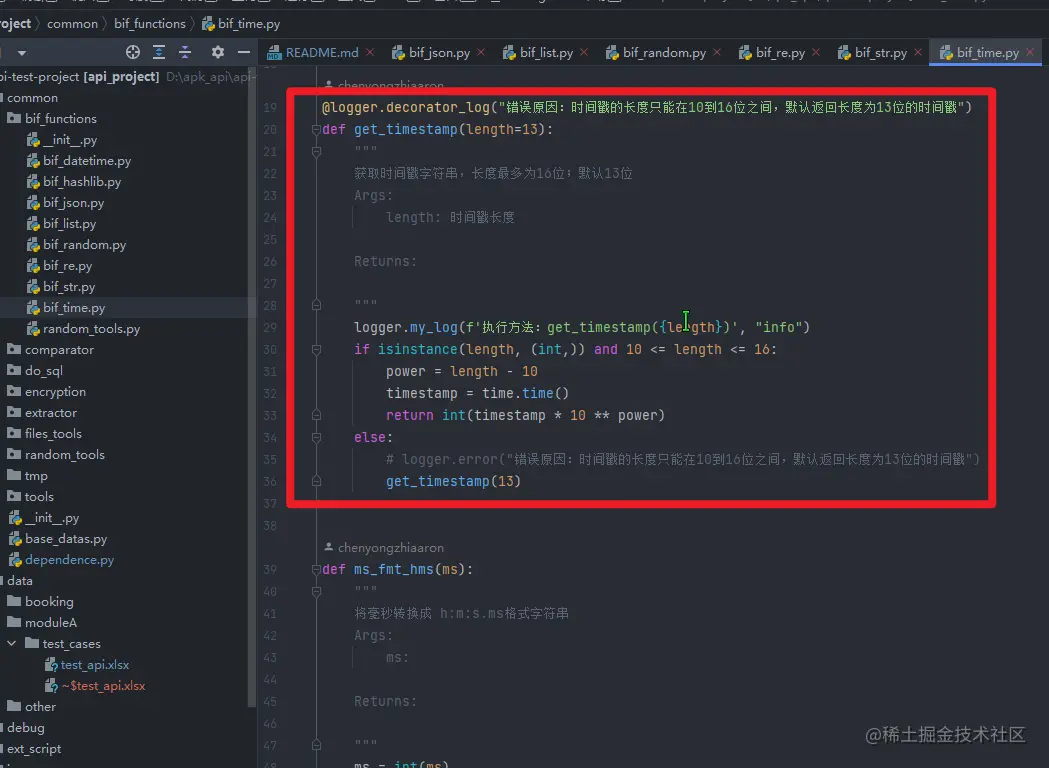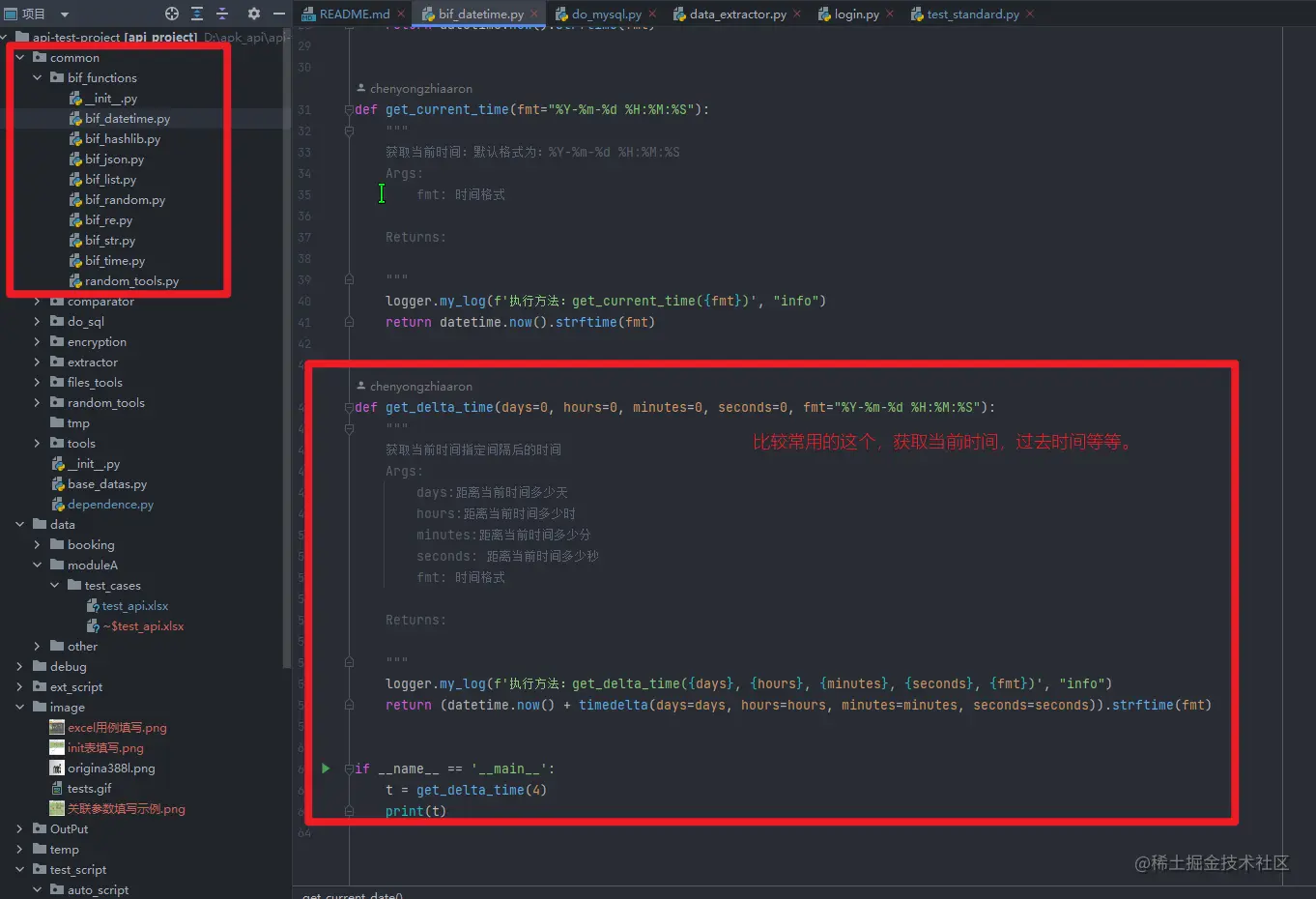 - 支持自定义拓展函数: 如用例中需要使用自己实现的函数,可以随时在指定的目录下面写上函数,通过 {{func(*args,**kwargs)}} 随时调用你自己设置的函数。