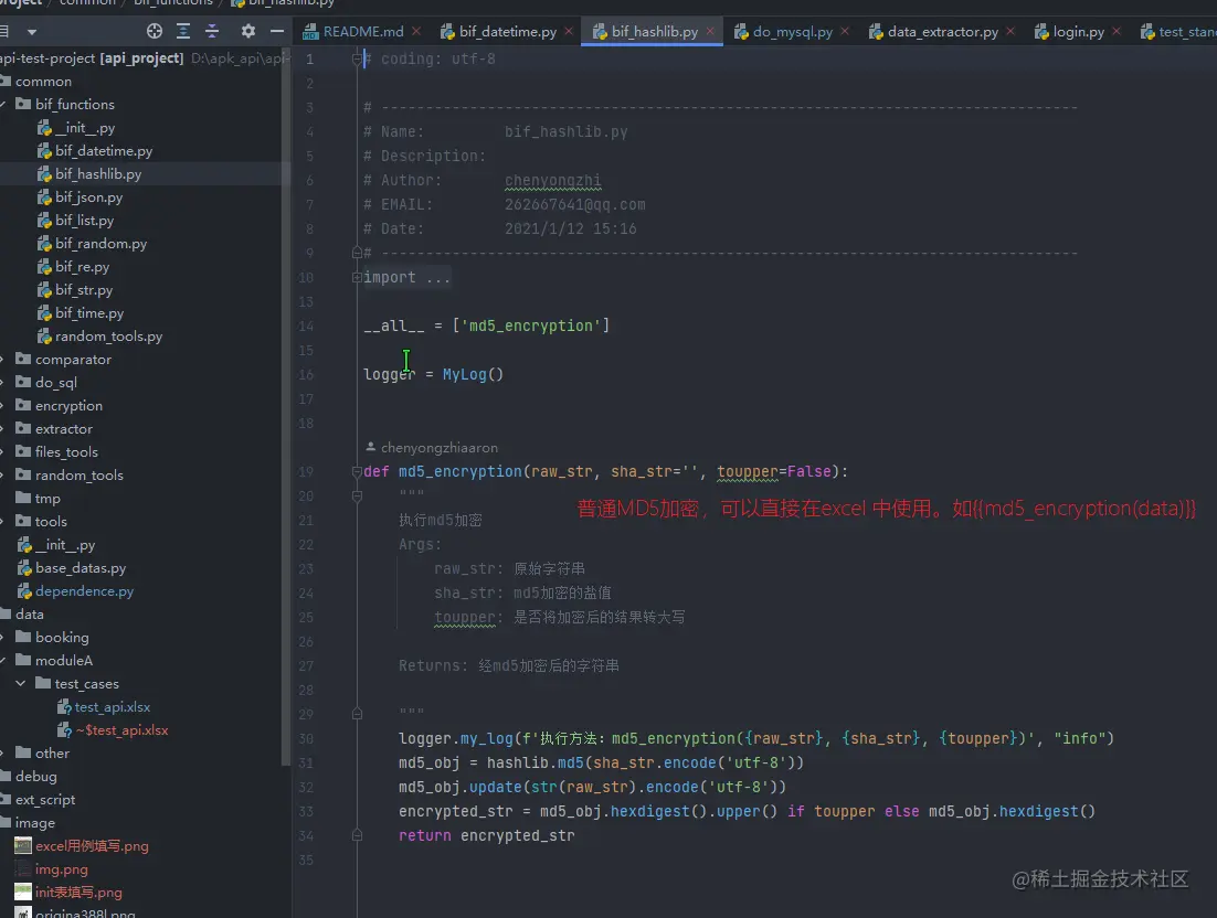 - 这个MD5方法,一般都没有使用,一般都是直接excel中是否使用【参数加密方式字段开关】来处理加密