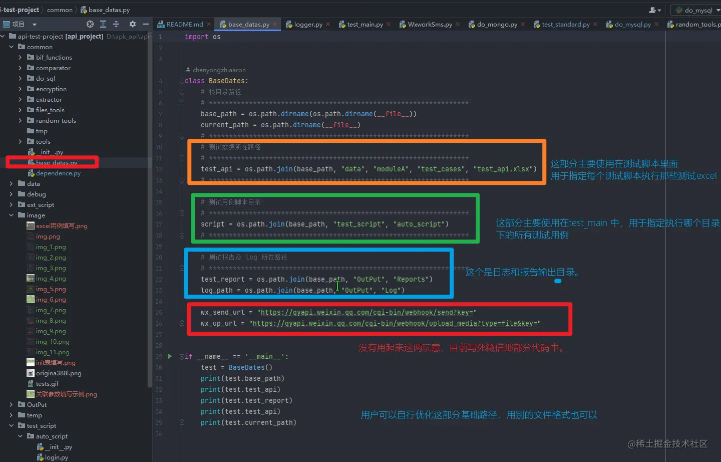 本框架主要是基于 Python + unittest + ddt + HTMLTestRunner + log + excel + mysql + 企业微信通知 + Jenkins 实现的接口自动化框架。
