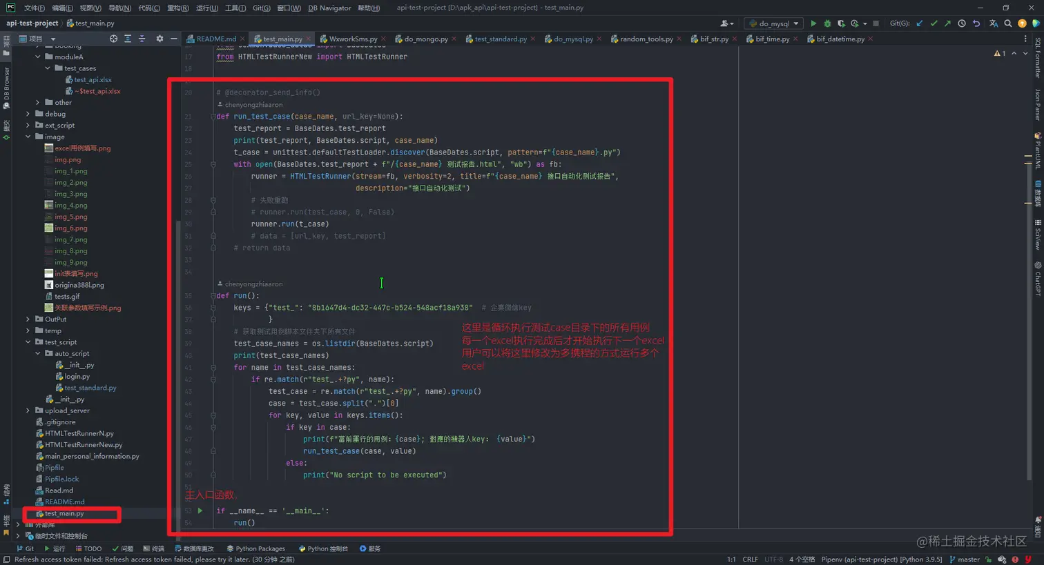 以上都填写完成,记得先关闭 excel,然后就可以单独执行 test_api.py 文件,或者直接运行 run.py主入口文件,生成HTML报告及excel测试报告