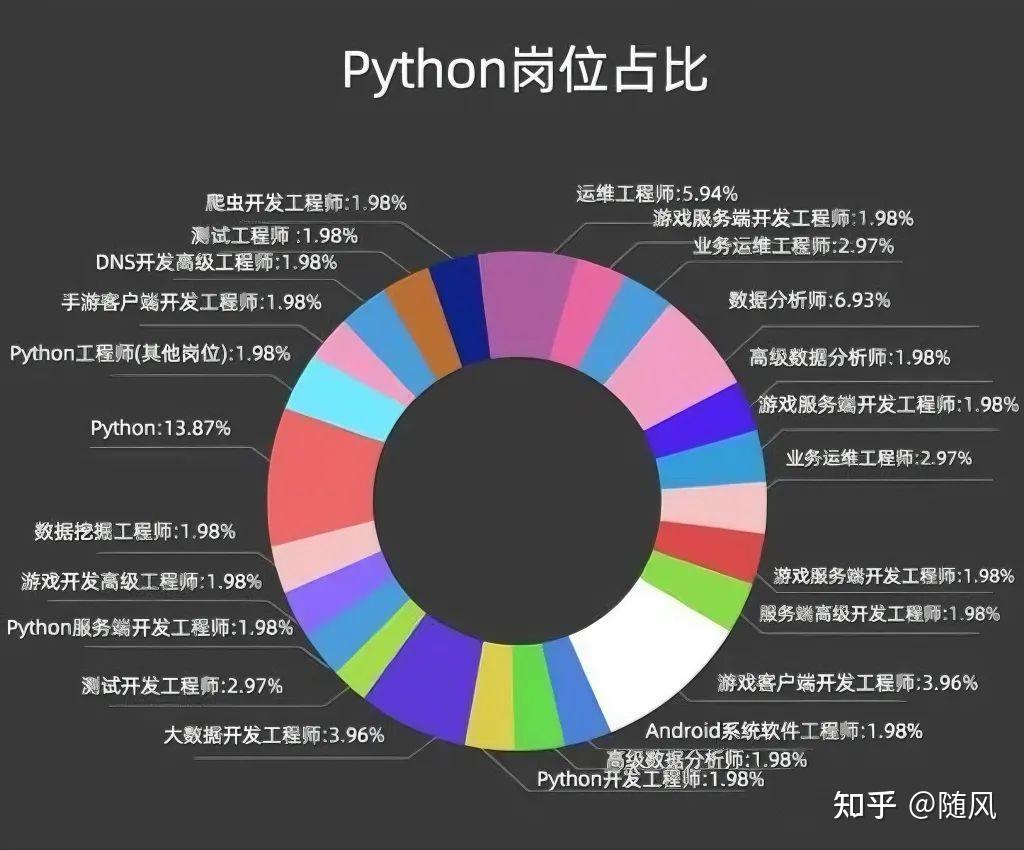 Python岗位,以后端开发和架构为主,以算法和数据挖掘为辅,并有少量前端、全栈开发岗,以及运维等。