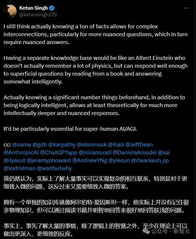 正如Karpathy所说,经过海量数据训练出来的超大模型(如GPT-4),大部分其实是用来记住大量的无关紧要细节的,也就是死记硬背资料。
