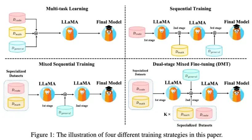 • Qwen组的DMT给了一个大致的数据配比方案,二阶段微调。模型最后见到的数据非常重要!直接影响用户体验。所以stage1进行一些数学代码这种特殊任务的提升,stage2进行更general的数据训练,看上去泛化性更好。要是倒过来,模型的输出可能就比较贴近特殊domain了(想刷榜math/code的反着来就行)。不过,还是得记得joint train, stage2也要混合stage1甚至pretrain数据, 保持一定的前阶段能力