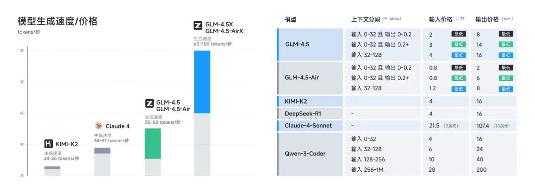 GLM-4.5 系列不是仅仅把多个能力简单拼在一起,而是实现了原生智能的深度融合。它在工具调用、网页浏览、软件工程、前端编程等领域都做了专项优化,既兼容 Claude Code 等代码智能体,也支持通过工具调用接口灵活扩展到各种智能体应用。