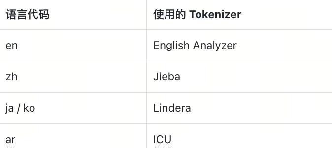 在跨语言的文本库中,单一的分词器往往无法覆盖所有语种。为此,Milvus 提供了 Multi-language Analyzer,它会根据文本的语言自动选择合适的分词器。