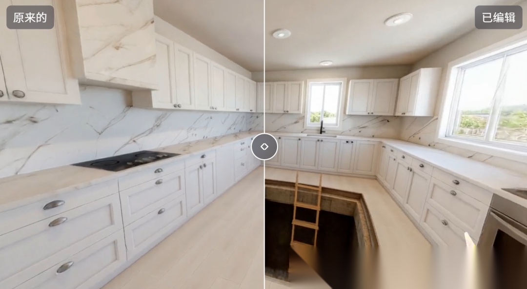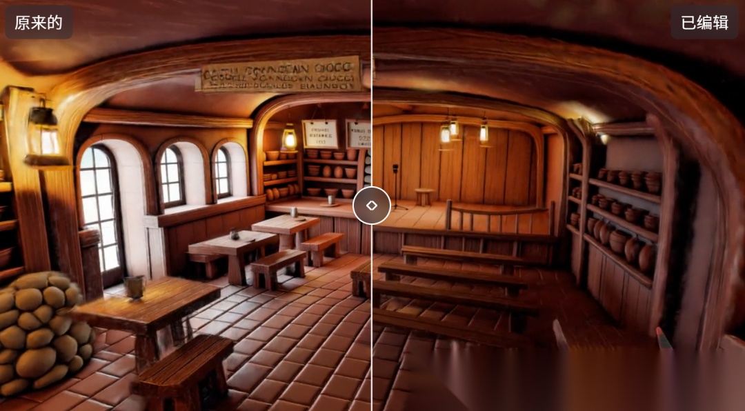 就跟AI修图一样,你可以编辑生成的3D世界,你可以移除一个物体,也可以大面积的改变风格,重构整个3D世界。