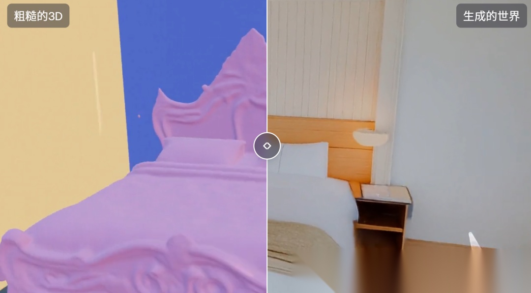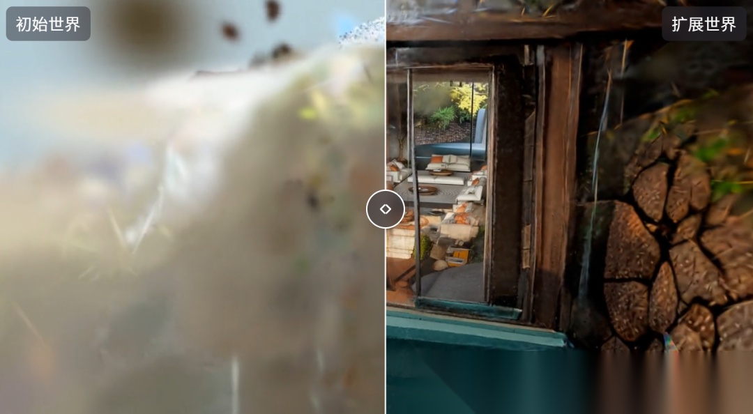 像之前的DEMO里,展示了做一个房间的3D世界,但是如果外面没有给图片的话,这个3D资产的视角到了房间外面,就会变成没法看的毛刺。