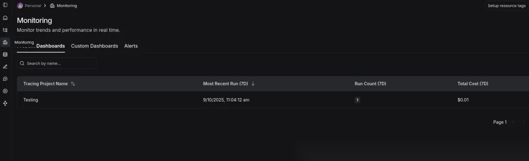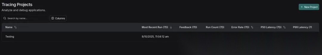 - Tracing Projects (跟踪项目): 跟踪多个项目及其轨迹 (traces) 或运行集 (sets of runs)。在这里,可以跟踪成本、错误、延迟 (latency) 以及许多其他信息。