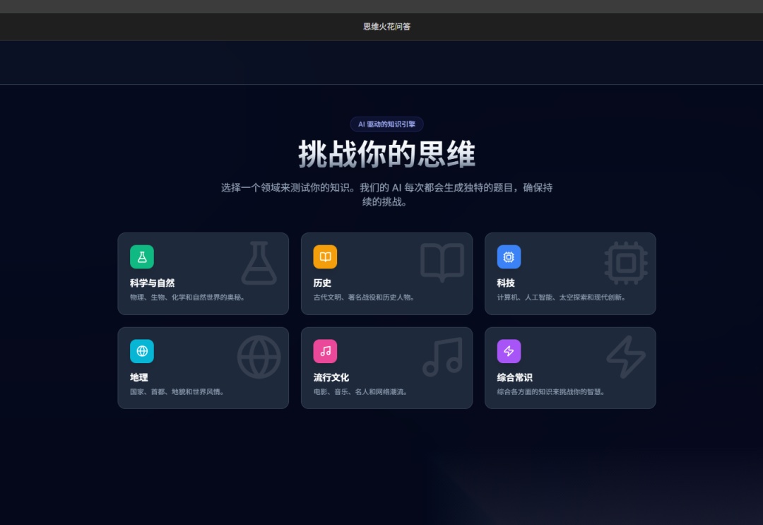 我甚至还能手搓一个知识问答网站,题目直接让AI帮你想,每次刷新,弹出的题目都不一样,而你只需要动动手敲键盘就好了。