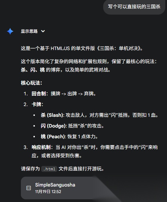 不过没关系,有了Gemini 3,这游戏咱可以自己手搓一个了。
