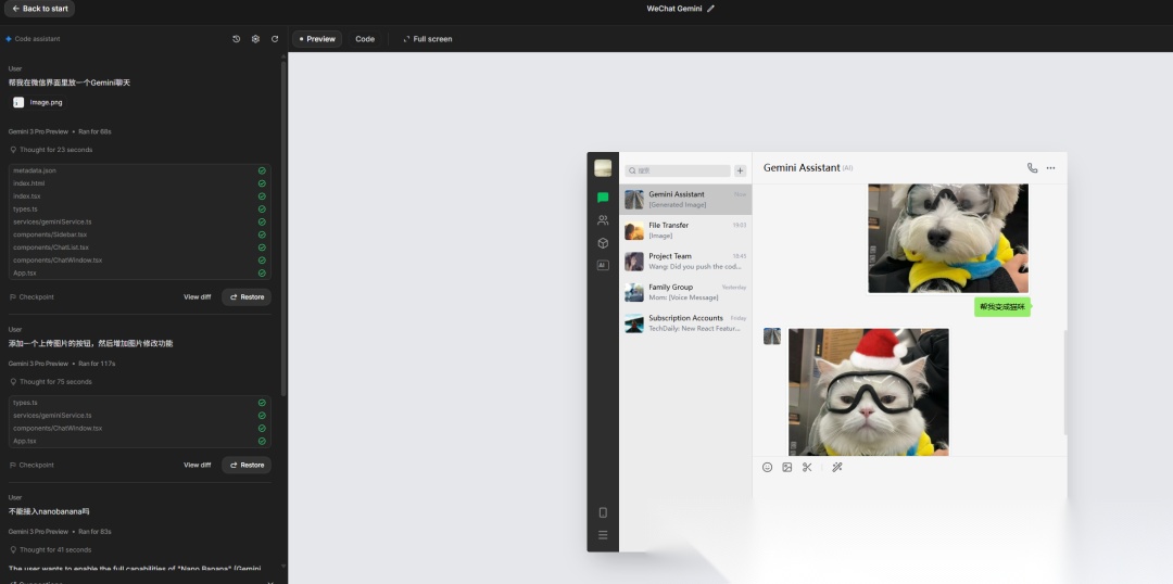 上面咱讲到,Gemini 3能1:1复刻微信,但只能简单跟程序聊天。