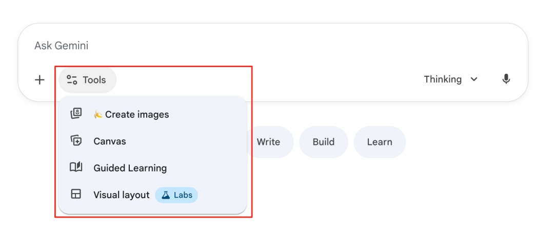 在 Gemini 平台,可以创建图片、写作、做网页、做PPT。