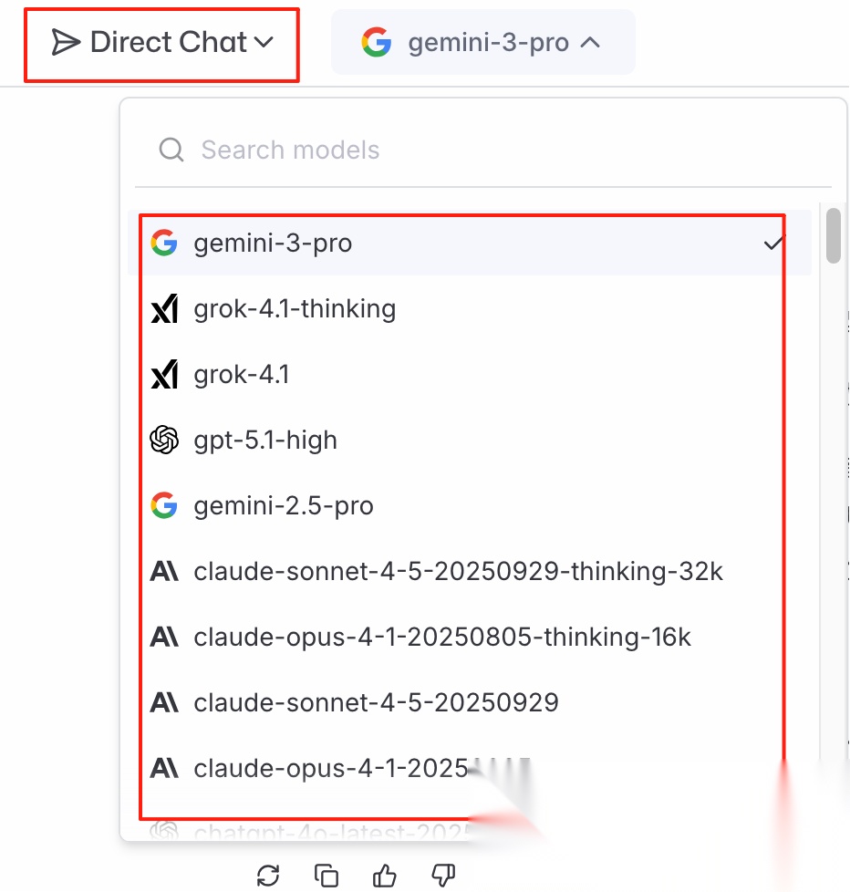 通过选择 Direct Chat 模式,可以直接选用具体的大模型。