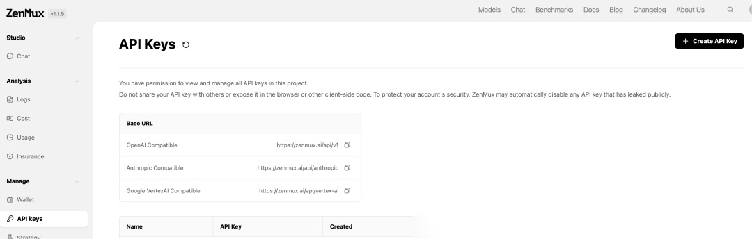 创建一个 key,就可以接入各种ChatBot 终端了。