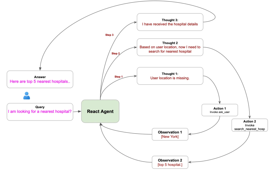 下面两个例子我们可以体会 ReAct 多轮循环的运行过程。