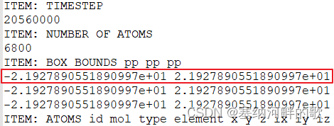 从服务器上下载dump.lammpstrj到本地,用Notepad++打开,选取一帧里完整的内容到Excel