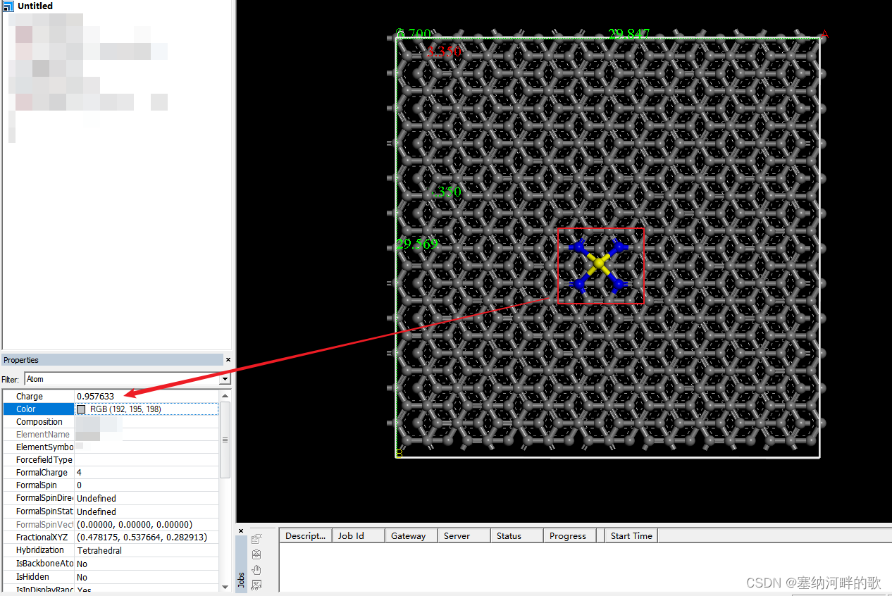单击原子-左侧设置框中修改Charge的值(默认都是0.00)