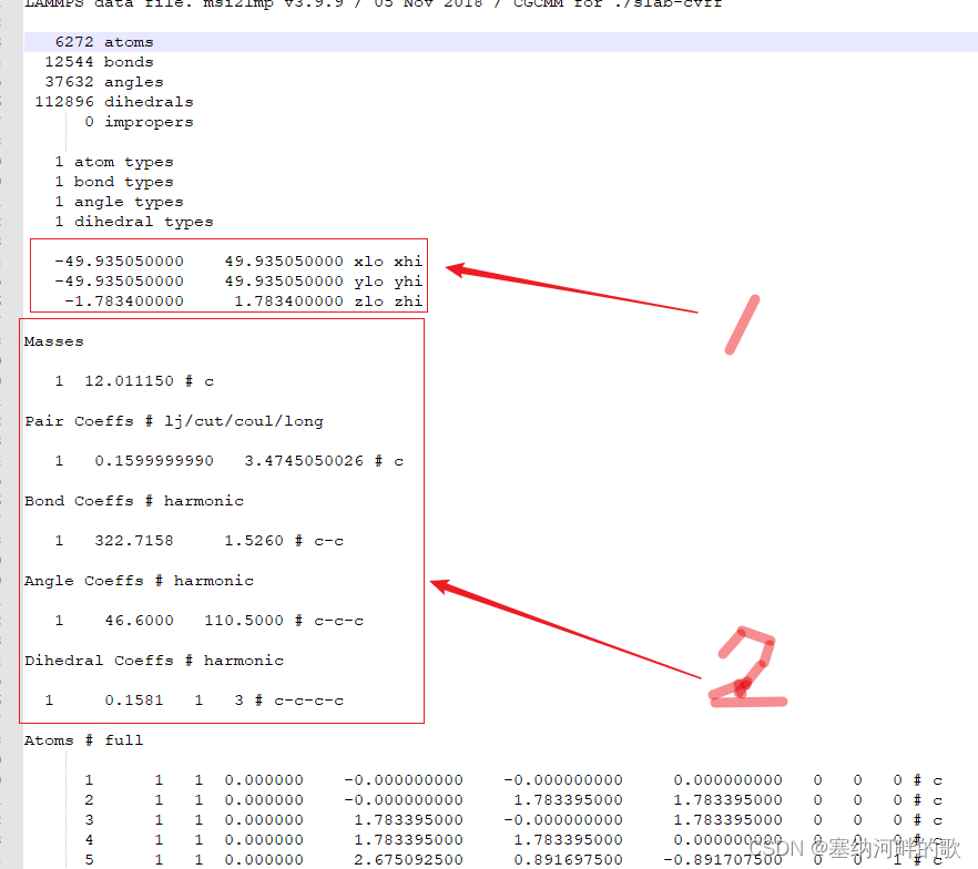 由于要使用metal单位制(之前是real),因此很多信息的数值格式需要注意