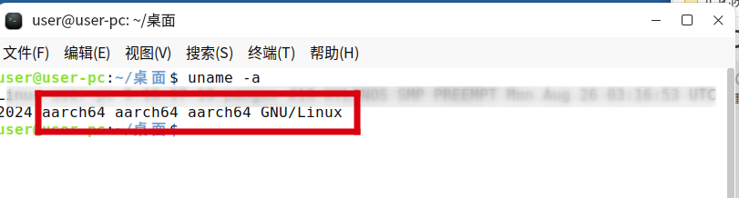 输入命令 uname -a,在命令行结果中查看系统架构信息