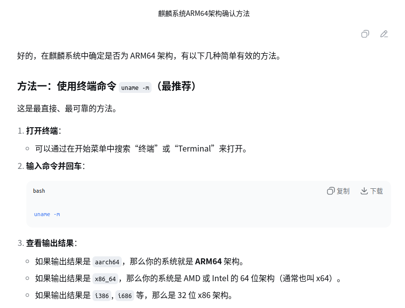 以我这里的为例,aarch64是ARM架构的64位执行状态(LoonArch是龙芯处理器的自主架构),如果不确定,还可以参考D老师的回复: