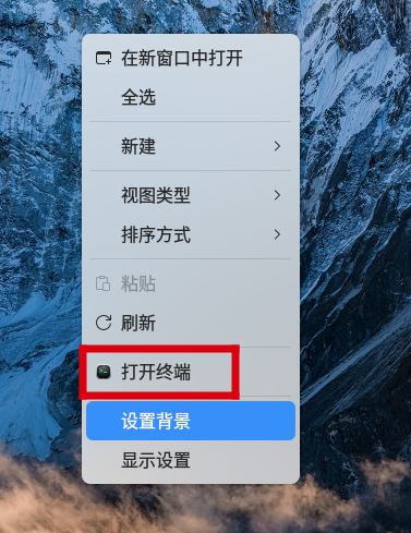 启动终端(桌面右键-打开终端)