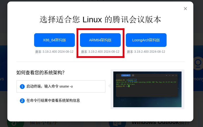 1. 检查系统架构,下载对应的软件安装包(腾讯会议下载中心)