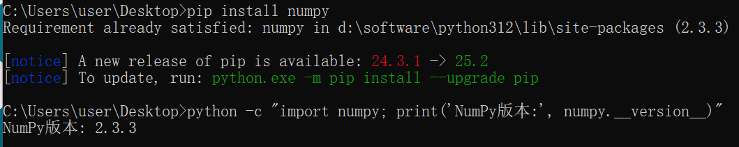 验证:python -c "import numpy; print('NumPy版本:', numpy.__version__)"