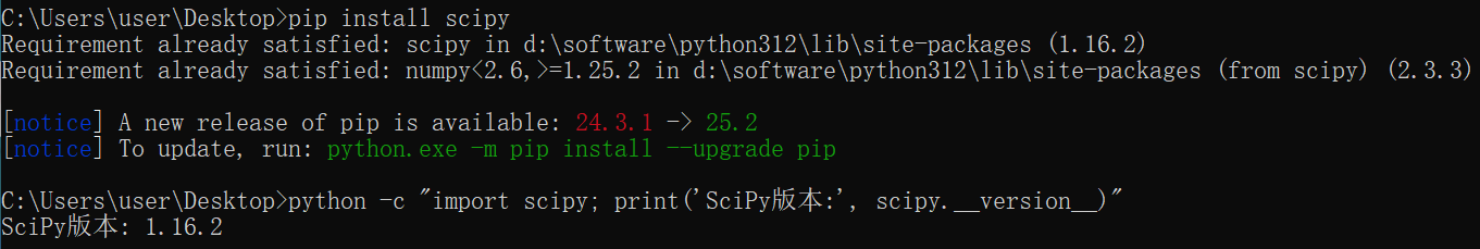 验证:python -c "import scipy; print('SciPy版本:', scipy.__version__)"