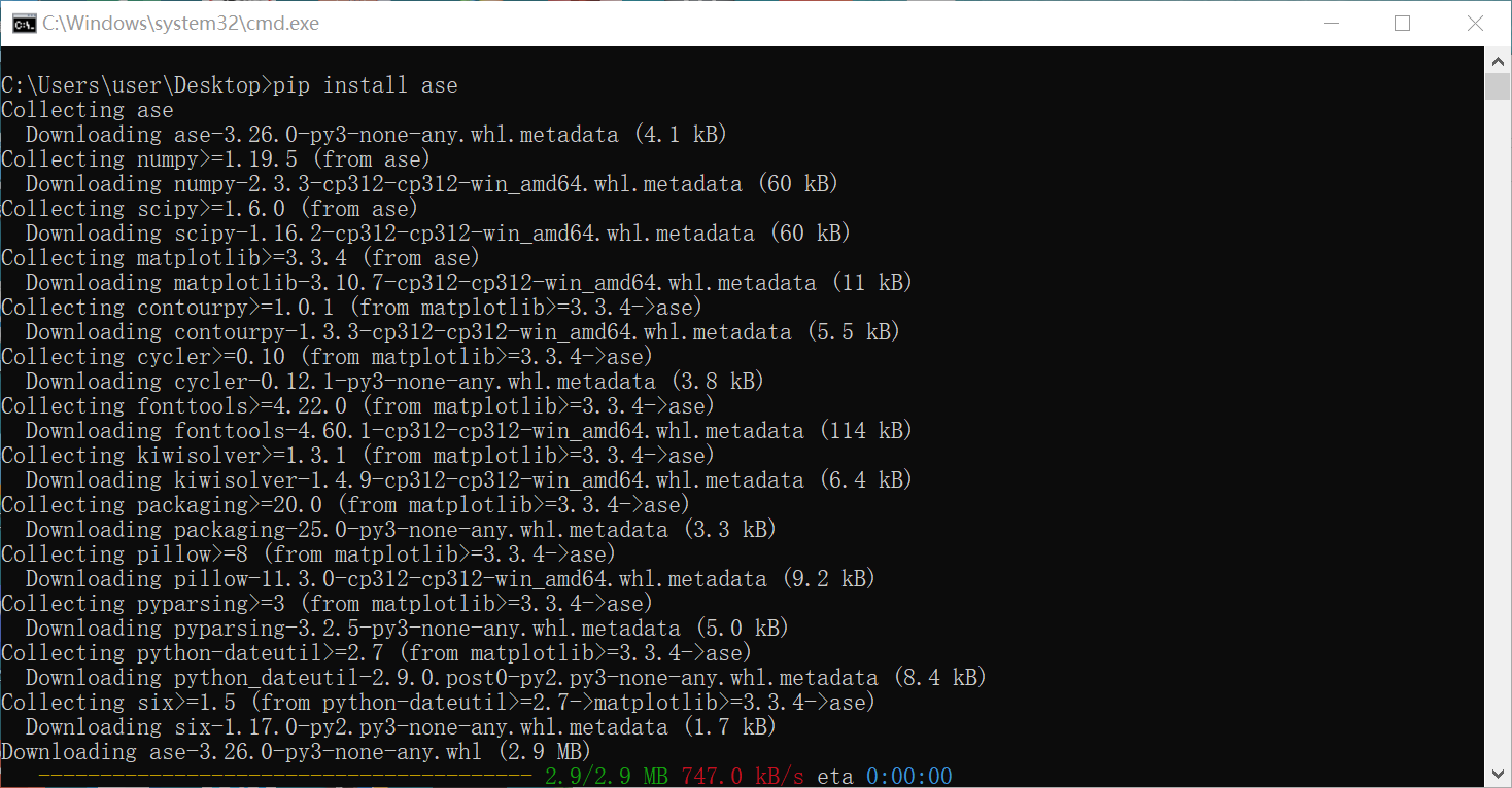 2. 通过 pip 安装 ASE(打开终端,输入下面的命令):