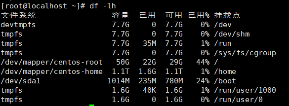 5、查看硬盘使用情况df -lh