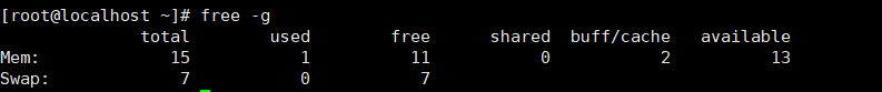 4、查看内存情况free -g (-g对应GB,-m对应mb)