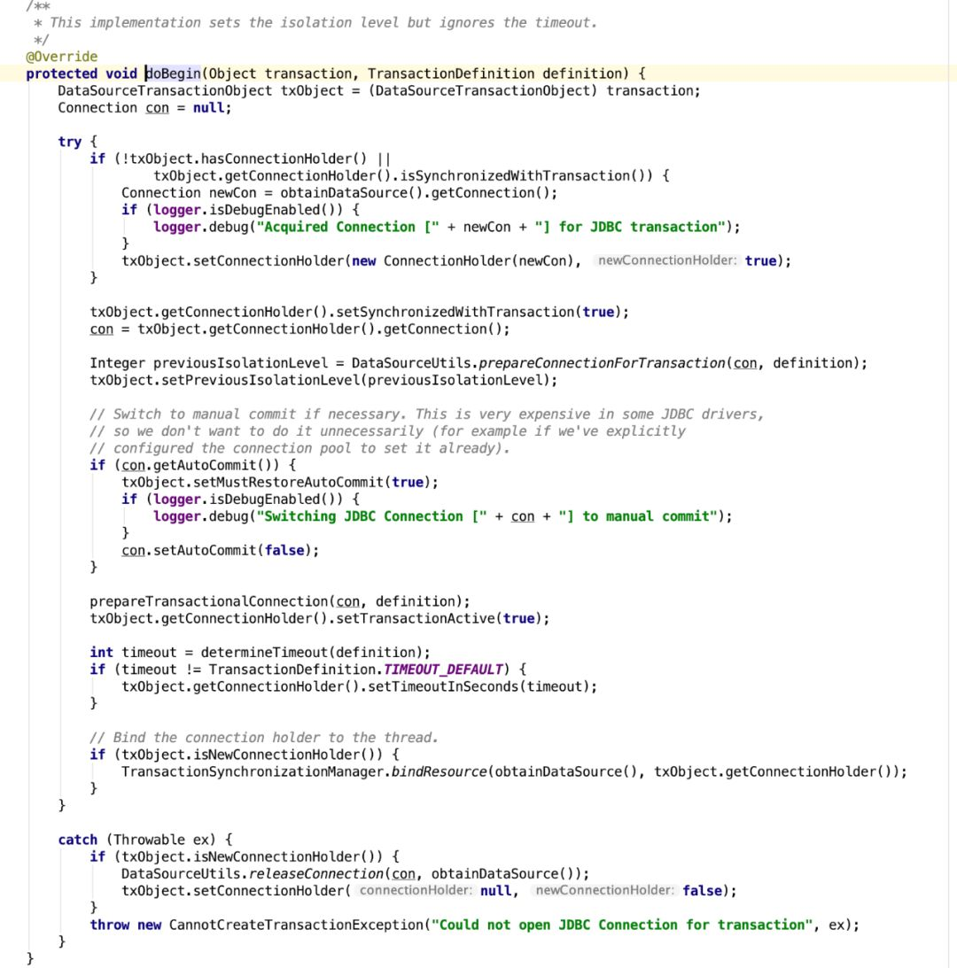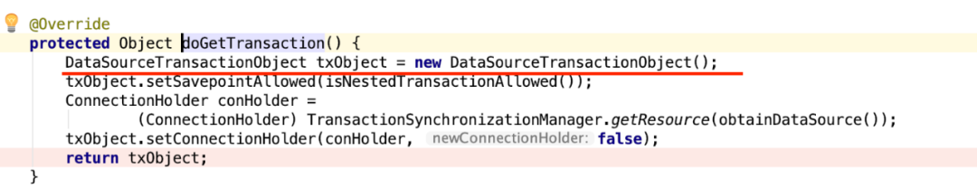 DataSourceTransactionObject txObject = (DataSourceTransactionObject) transaction;