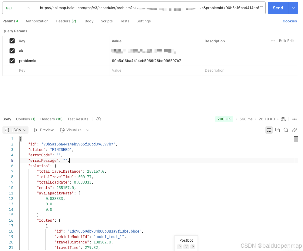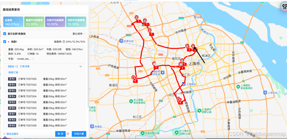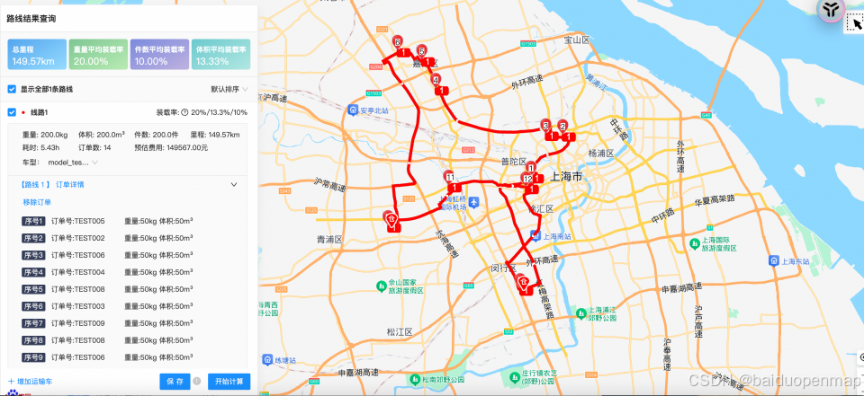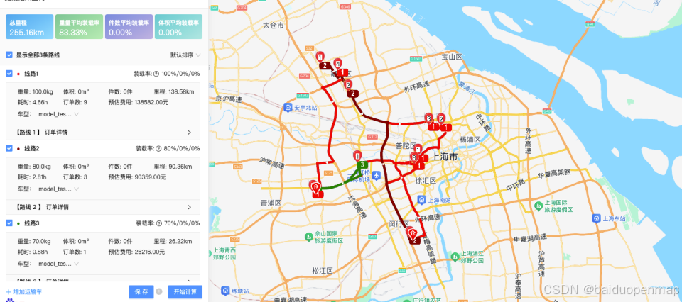 详细的使用方法和参数设置,请参见我们的官方文档:智能调度排单排线服务 | 百度地图API SDK