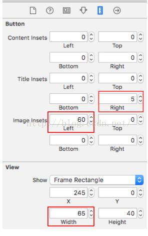 选中编辑button,切换到size inspector页面,默认情况下 content Insets、Title Insets、Image Insets三个的默认值都为0,