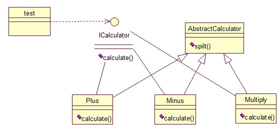public class StrategyTest { public static void main(String[] args) { String exp = "2+8"; ICalculator cal = new Plus(); int result = cal.calculate(exp); System.out.println(result); } }