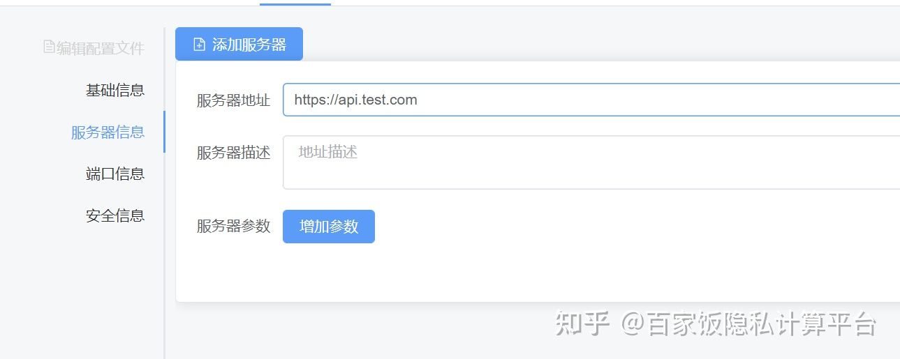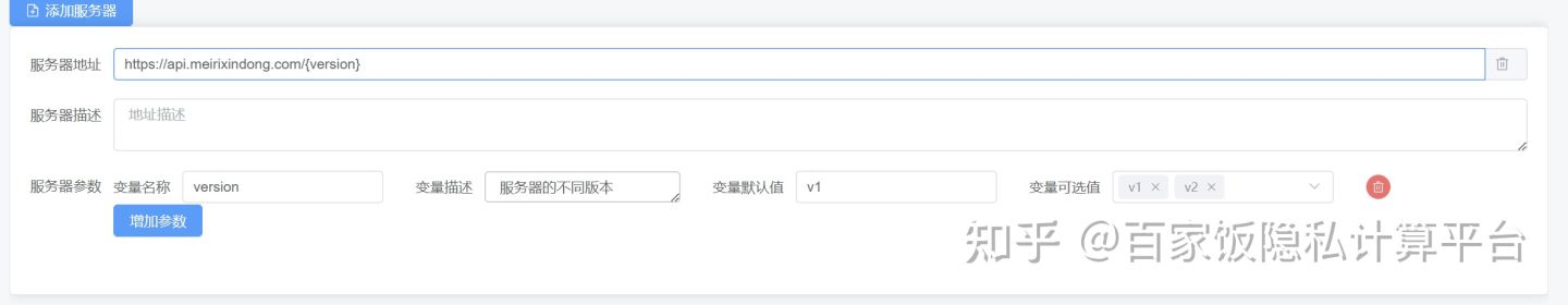服务器就是API的访问URL,例如我们的接口如果是https://apitest.com/v2/api1,那么服务器可以配置为https://apitest.com/或者https://apitest.com/v2/,当然,这里输入的少了,后面定义API的时候就会多输入一些,因为API的完整信息就是服务器信息和端口信息拼接成的。