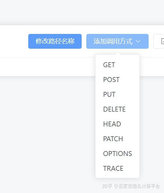 每个接口,我们需要进一步定义接口的调用方法,调用方法是http标准的调用方式,点击添加调用方式即可从下拉菜单中选择