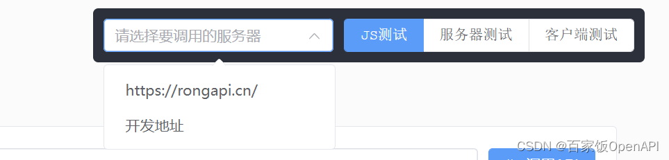 测试面板的右上角提供选择服务器与测试环境的功能入口。