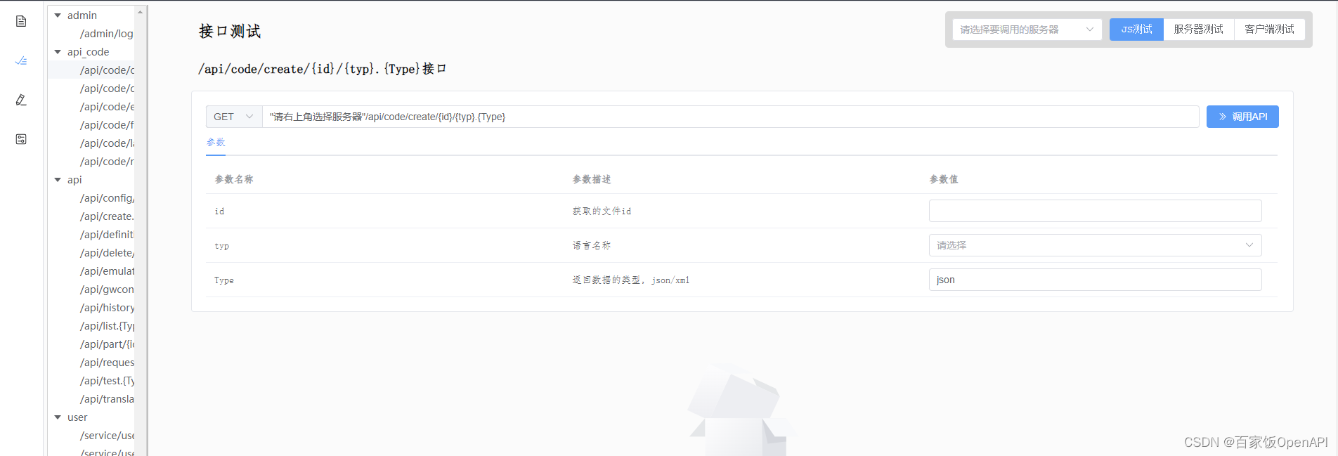 百家饭OpenAPI平台 0.6.0版本提供的第二个工作台功能就是API测试功能。
