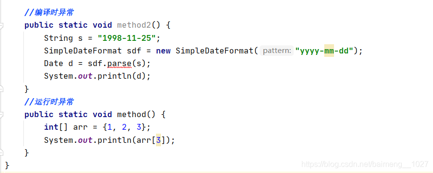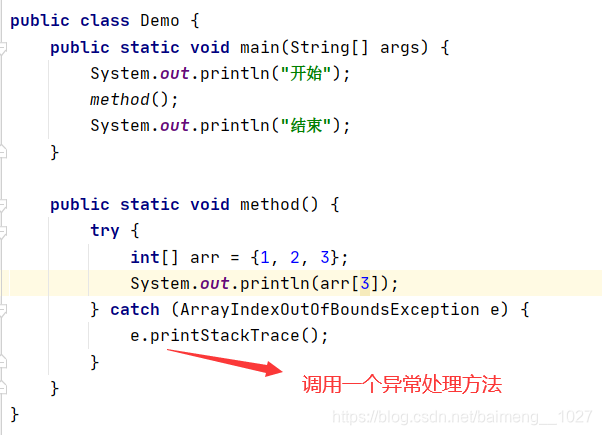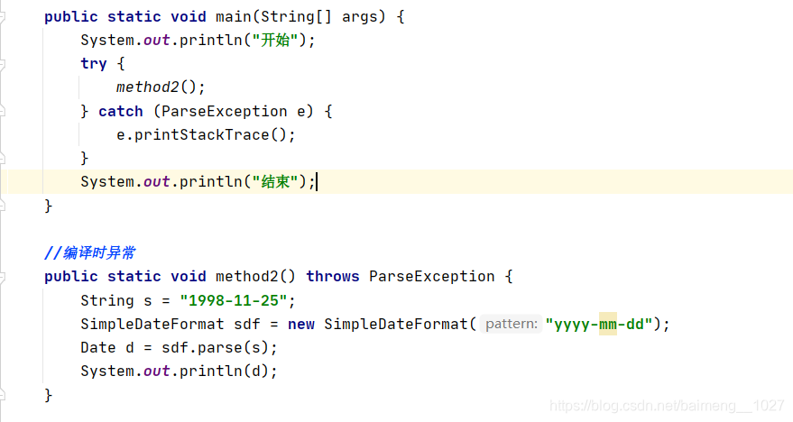 - 编译时异常必须要进行处理,两种方案:try…catch… 或者 throws,如果采用 throws 这种方案,将来谁调用谁处理