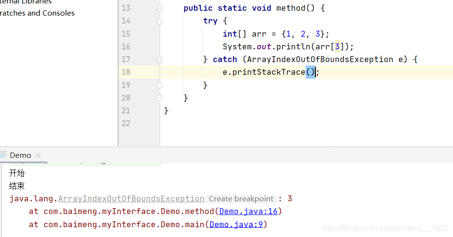 - 把异常的名称,异常原因及异常出现的位置等信息输出在了控制台