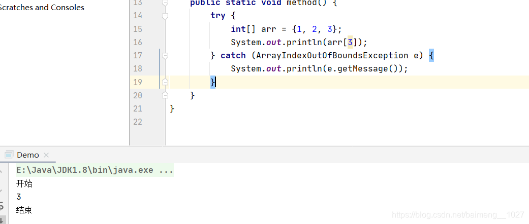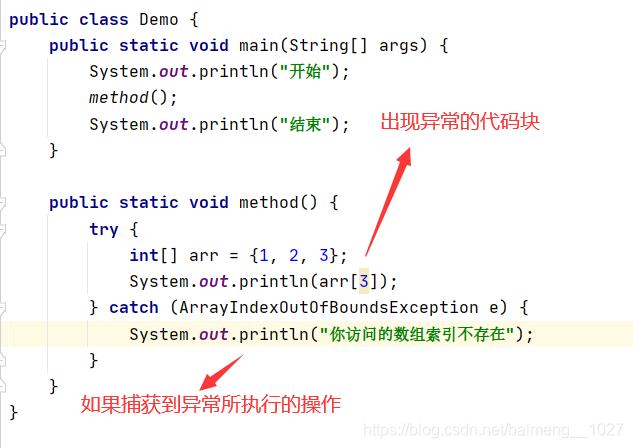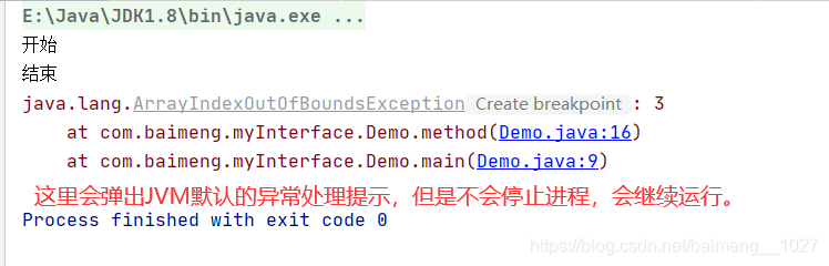 如果程序出现了问题,我们没有做任何处理,最终JVM会做默认处理的处理