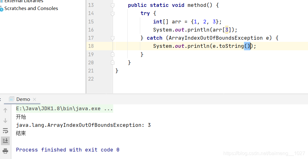 出现异常,会自动生成一个异常类对象,该异常对象将被及交给java运行时系统